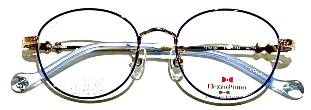 フロント部は濃紺のリムカラーデザインなので、メタルフレームですがお顔の印象がはっきりします。