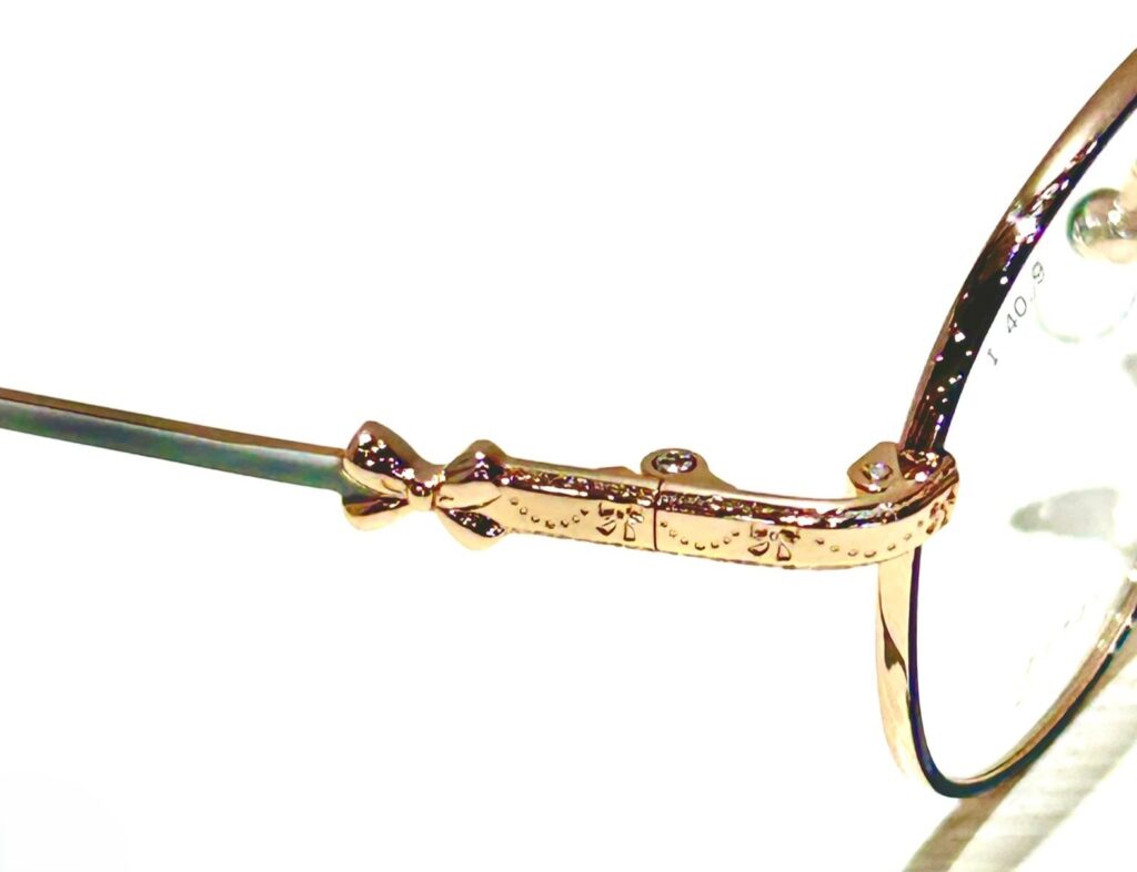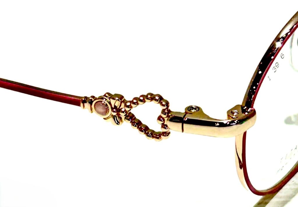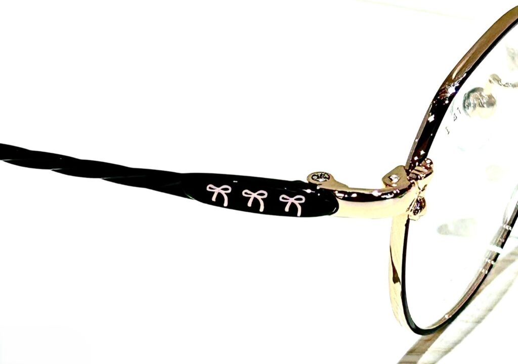 クラウンパント風なモデルです。                                                                            モチーフのリボンは智の前面にあり、テンプルチップにはハートが付いていますね💖